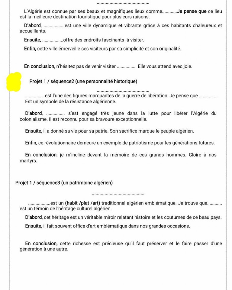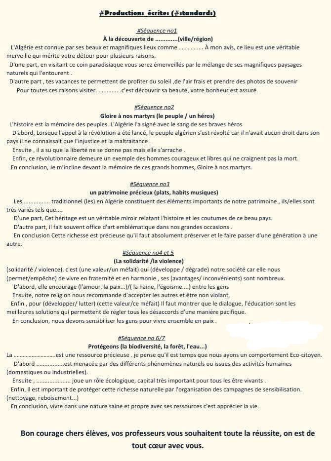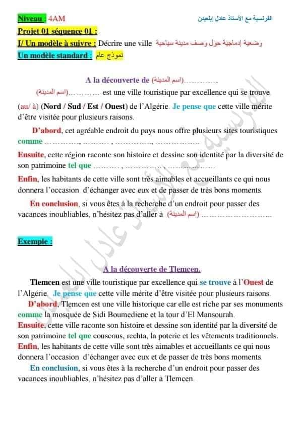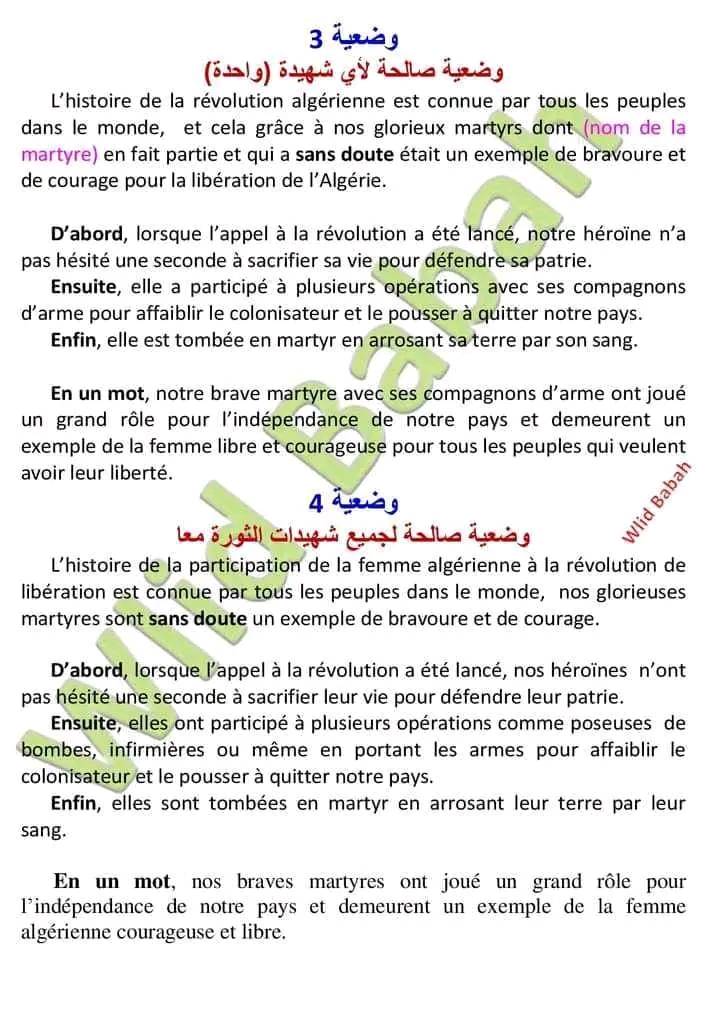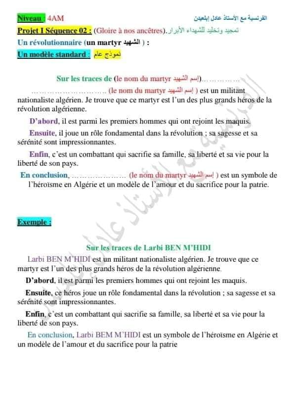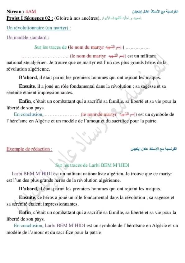 تعابير للحفظ standard على الشهيد والمدن بالفرنسية لتلاميذ السنة الرابعة وصف مدينة / شهيد من شهداء الثورة