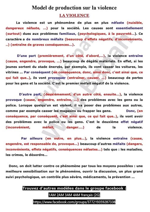 # **Production écrite standard sur la violence, pour éviter les répétitions, vous pouvez remplacer les expressions/mots en bleu par les celles en rouge **