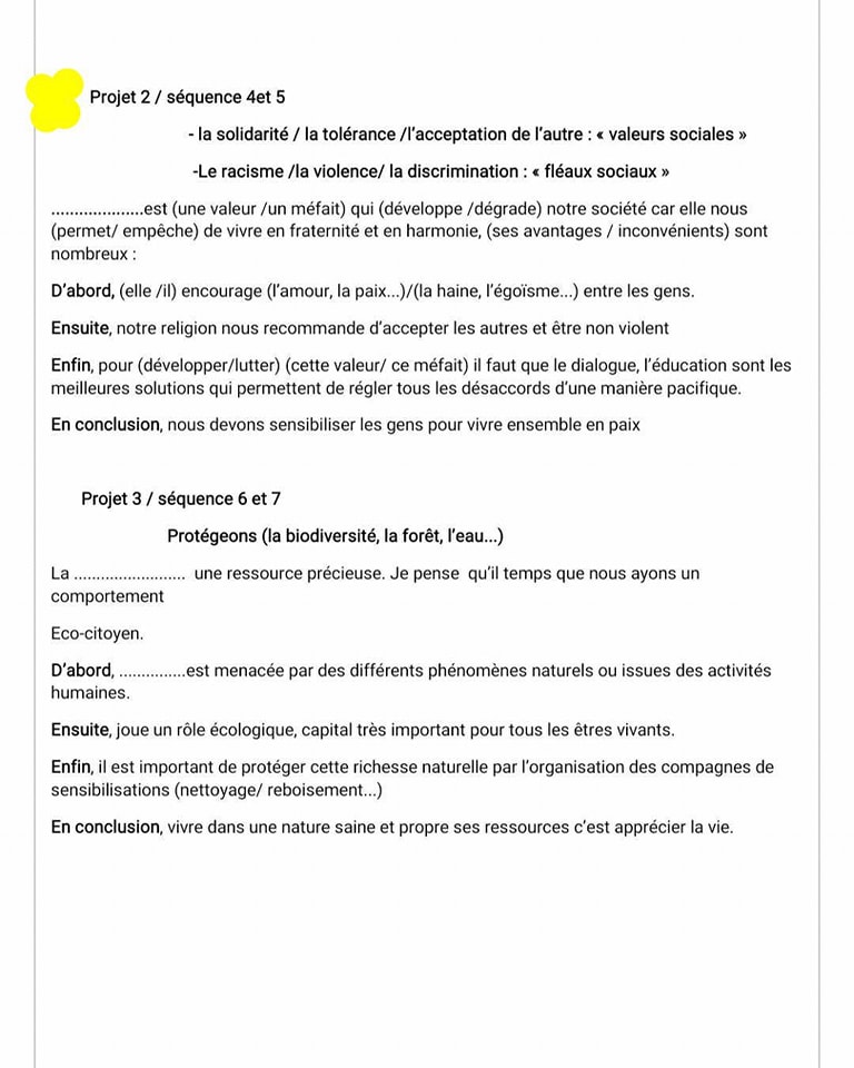 un modèle d’une production écrite (séquence 4) : argumenter dans le dialogue pourtant sur les sujets suivants : la solidarité / la tolérance / l’acceptation de l’autre.